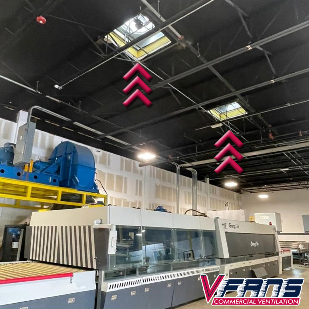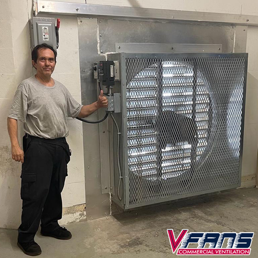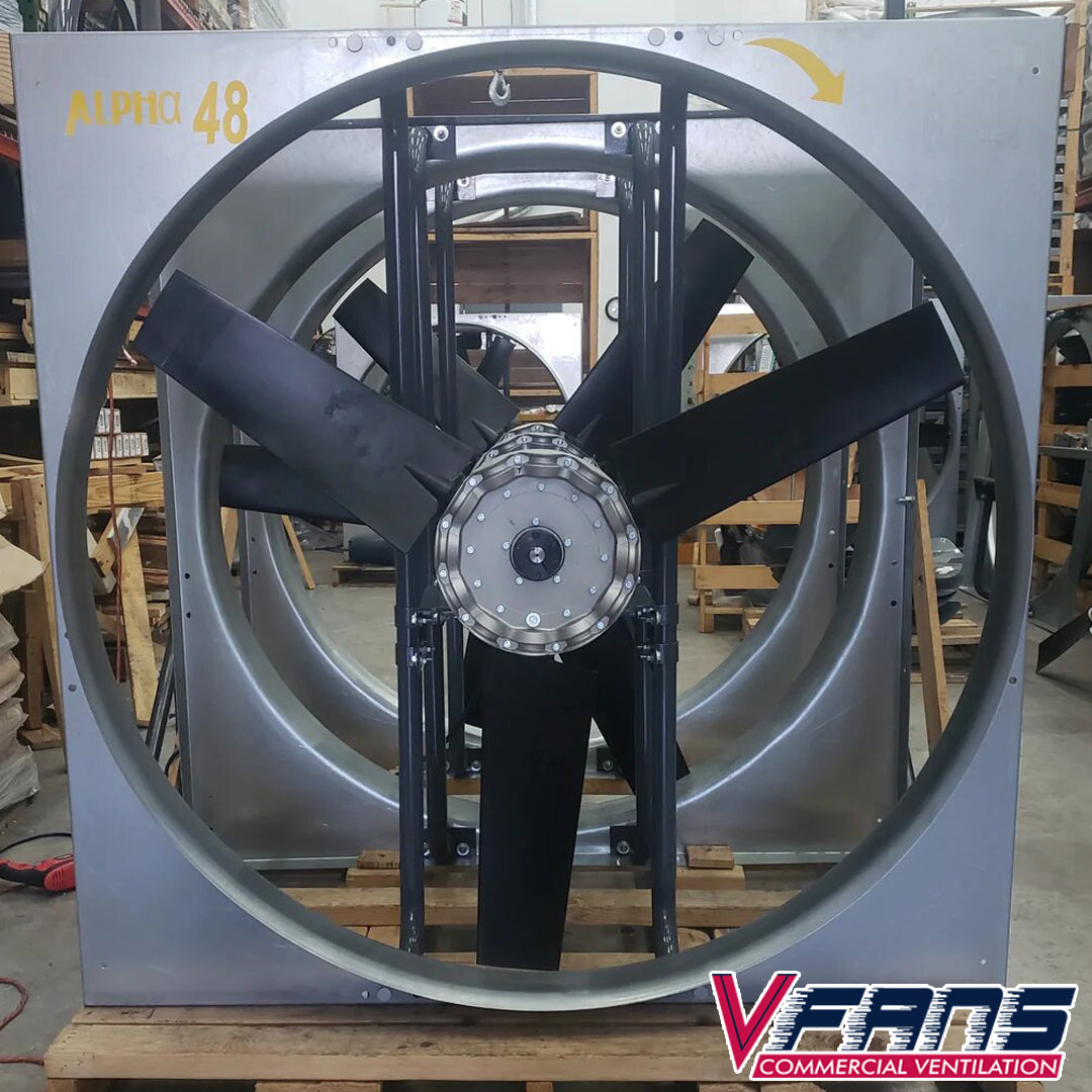 The number of Exhaust and supply fans required will depend on the size of the building. In a small confined setting,a single Alpha 48/3B Exhaust Fan on the roof or embedded in the wall while keeping the loading dock’s overhead door open should be sufficient to create Airflow and rid the place of hot air. In larger facilities, we might recommend installing several Exhaust Fan units to pull out the tainted air, and a matching number of fans on the opposite end to supply external fresh air. In larger settings air-circulator fans may be necessary to boost the Airflow.